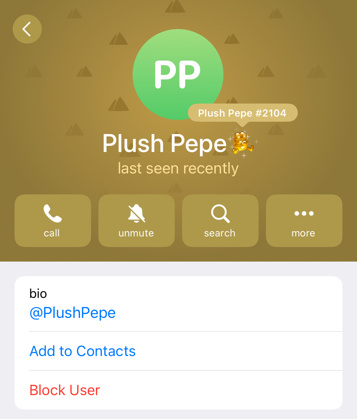 See the difference between standard Telegram profile and Plush Pepe theme